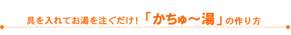 「かちゅ~」とは、沖縄の言葉で「かつお」のことで、それに湯を注いで作るから「かちゅ~湯」、