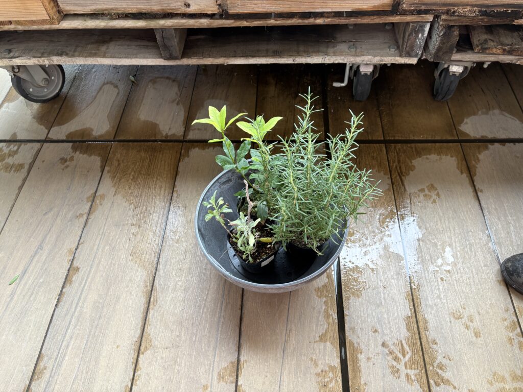 持ち帰ったハーブたちはさっそく日当たりの良いところに置きました。