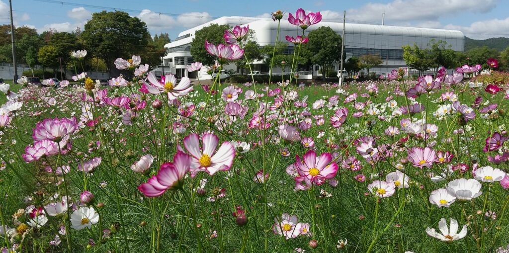 夢コスモス園は、毎年京都府亀岡市の亀岡総合運動公園の近くで開園されています。