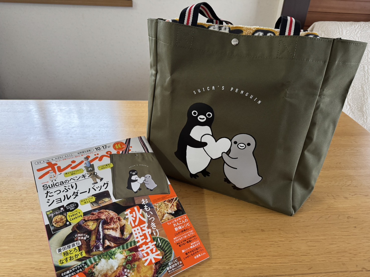 オレンジページ10/17号増刊【Suicaのペンギンのたっぷりショルダーバッグ】がお買い物に大活躍♪