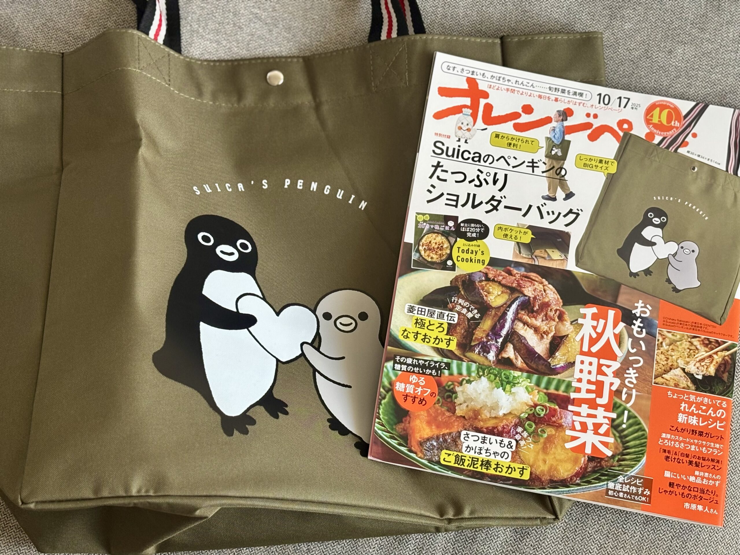 オレンジページ10/17号増刊【Suicaのペンギンのたっぷりショルダーバッグ】がお買い物に大活躍♪