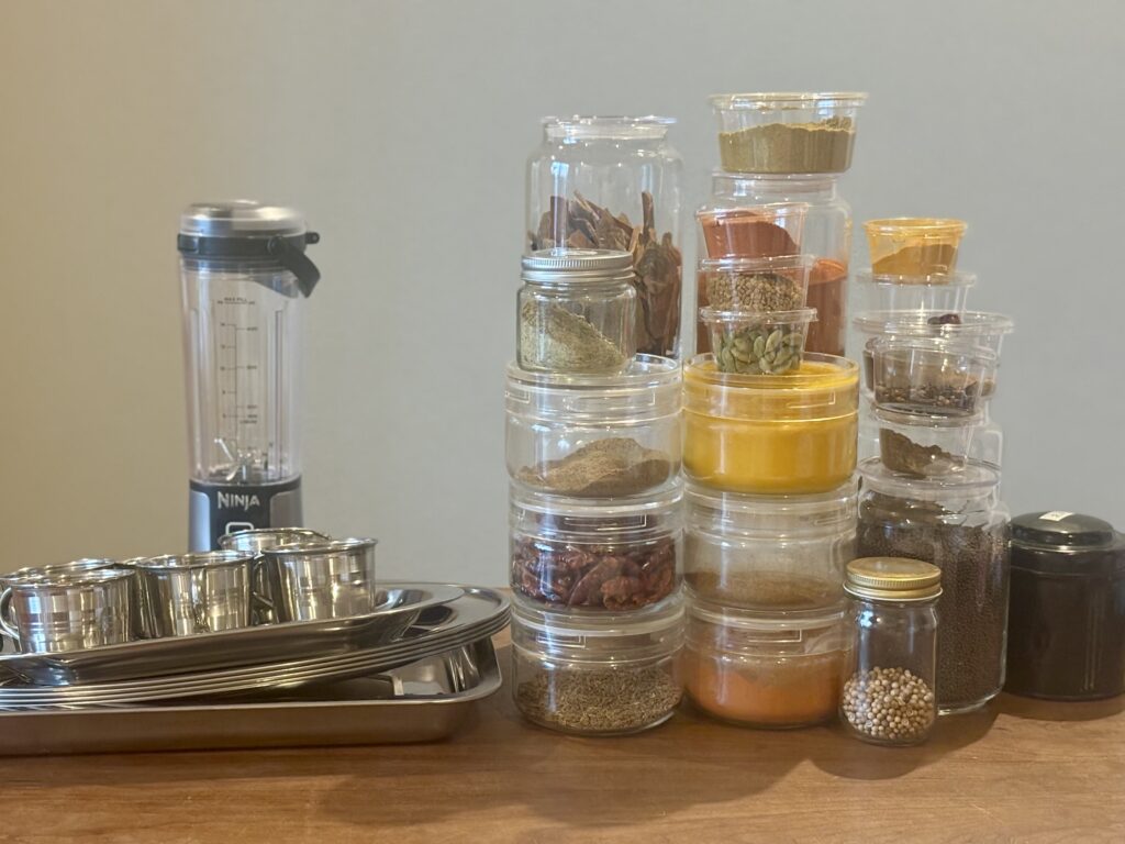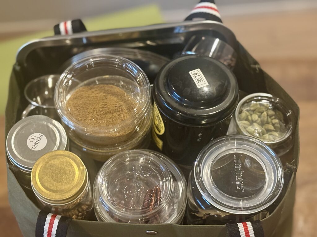 先日、この沢山のスパイス瓶や皿やミキサー等をを持ち運ぶ必要がありました。
