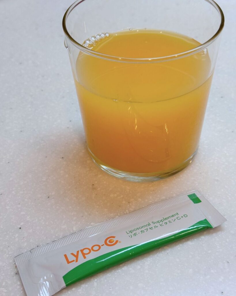 そのあと、Lypo-C Vitamin C+Dをオレンジジュースで割って一杯飲みます。毎朝必ず飲むようにしています。