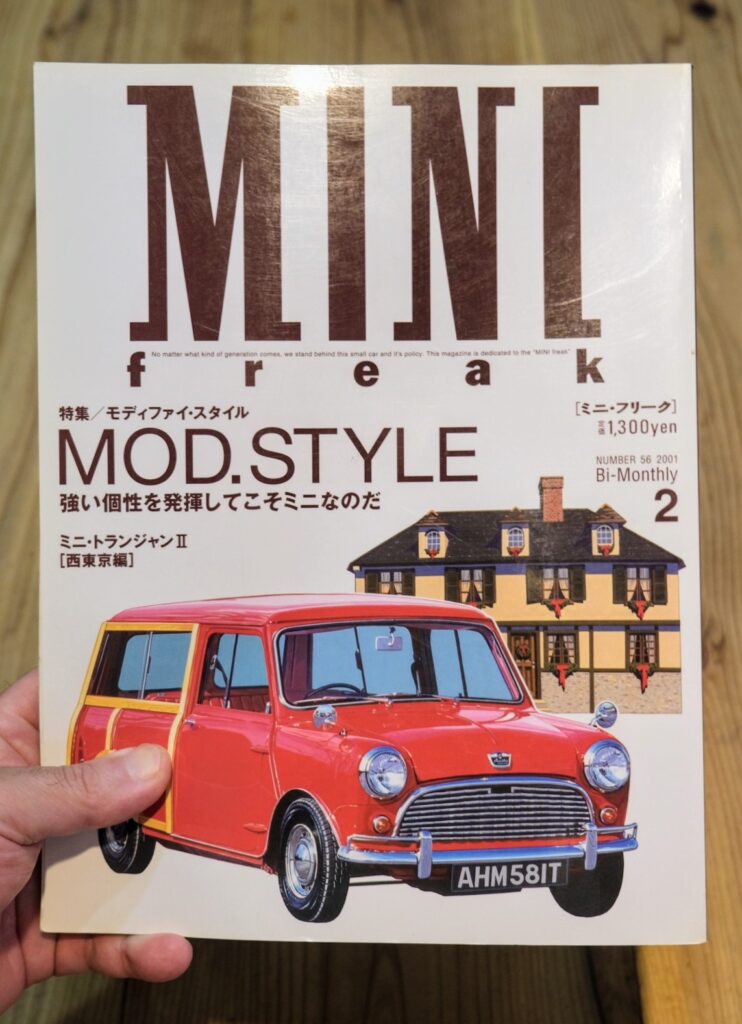 ちょっと昔のミニクーパー乗りなら誰もが「あぁ、あの本・・・」という伝説の雑誌ミニ・フリークである。わたを(25)は車が好きで、ミニが好きで、何度か掲載していただいた号を今でも手元に置いてあるのだ。カスタムカーなどは捨ててしまったようだ、探してみたが見つからなかった、残念(合掌)