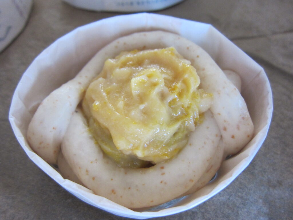 “かぼちゃカスタードのパン”も焼きました。パン生地にかぼちゃカスタードをのせて焼いたパンです。