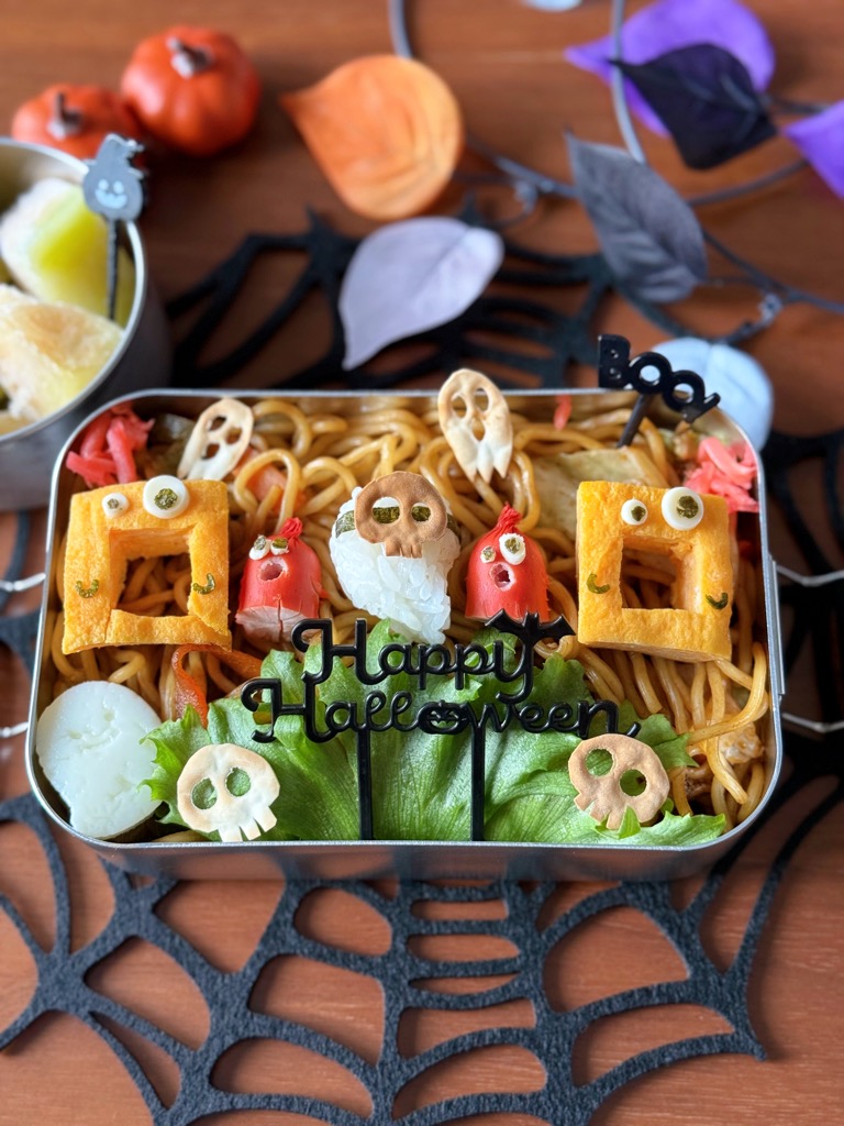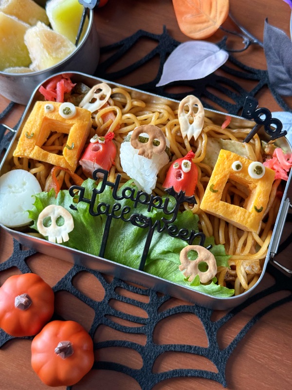 【ハロウィン】今年もきました!焼きそばのハロウィン弁当♪麺がくっつかない方法!