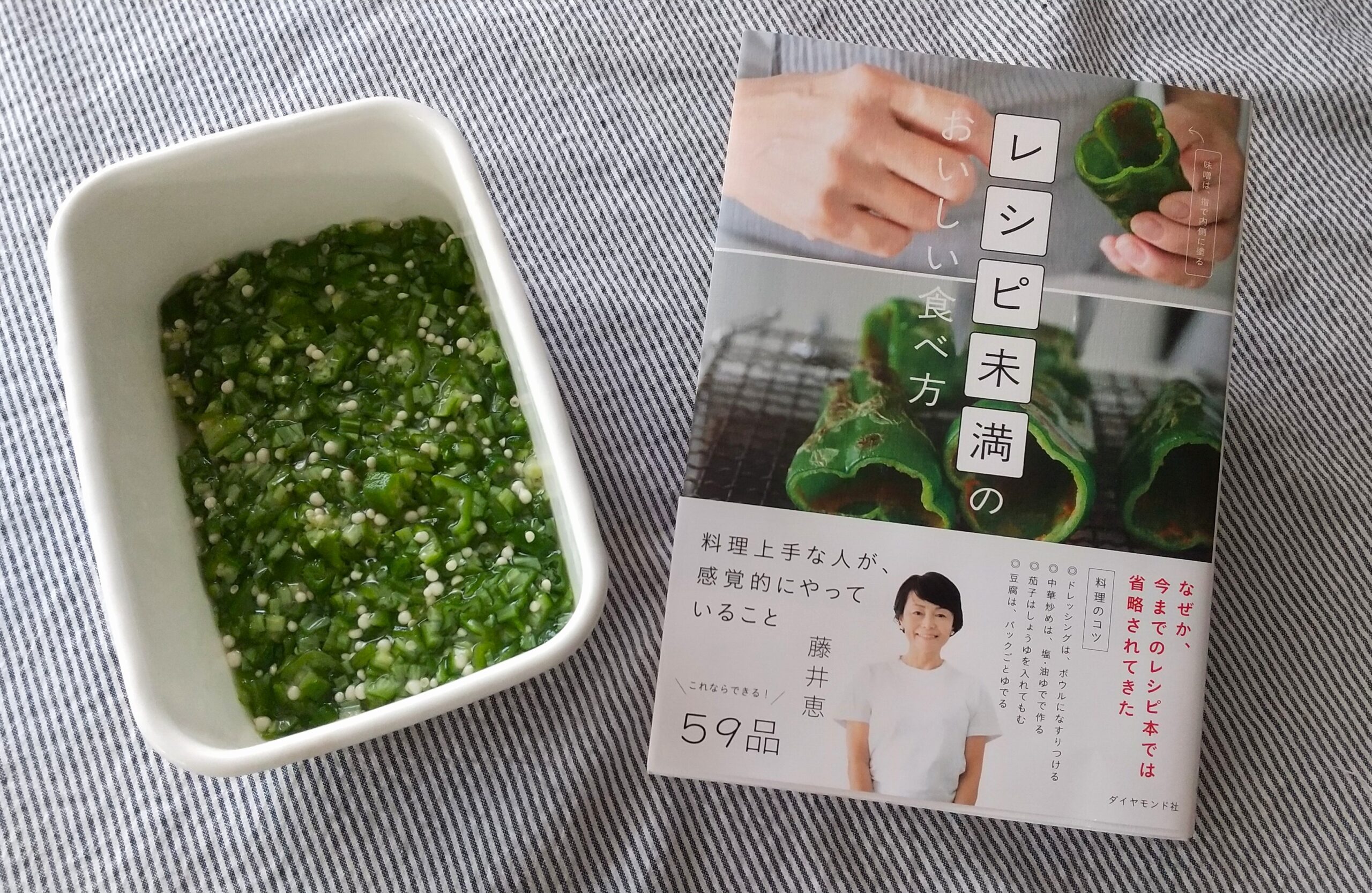 隣に写っているのは、この本の中の『ネバネバ野菜は水につける』という項目で紹介されているオクラです。
