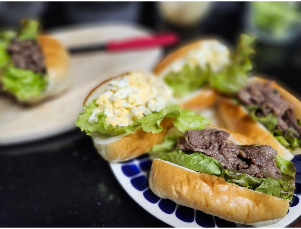 消費期限ぎりぎりで半額になっていたパスコのパンで作ったハンバーガー。