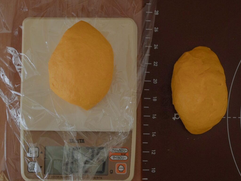 かぼちゃは蒸してマッシュしたものを練りこみます。