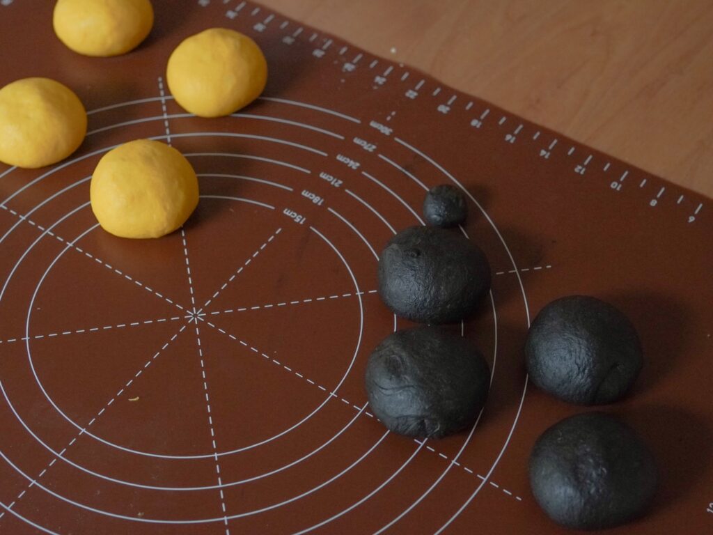 きれいに竹炭が混ざったらこちらも丸めてボウルへ。