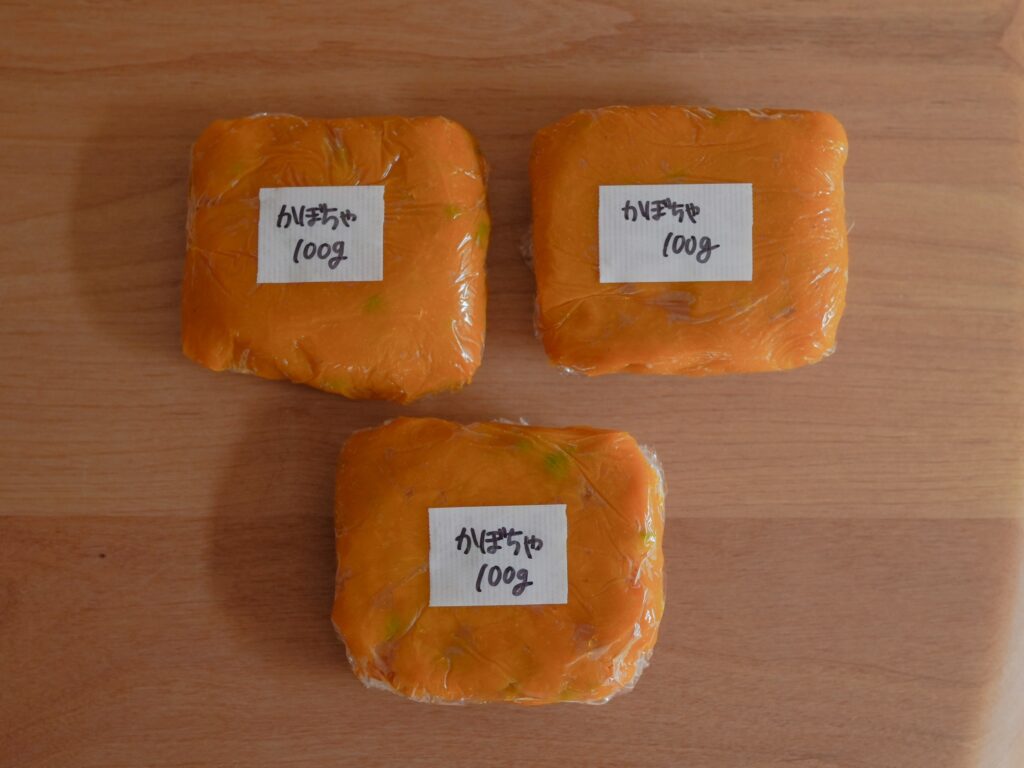 何かとこの時期便利なので、私はマッシュしたものの重さを書いておいて冷蔵冷凍しています。