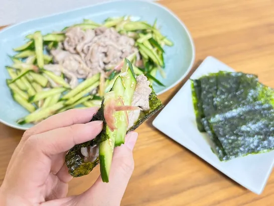 「豚肉ときゅうりの韓国海苔巻き」きゅうりを使った簡単レシピ【おすすめの食べ方】