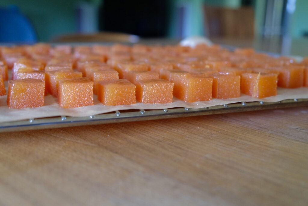 3キロ分の裏漉し果肉でゼリーを作ります。