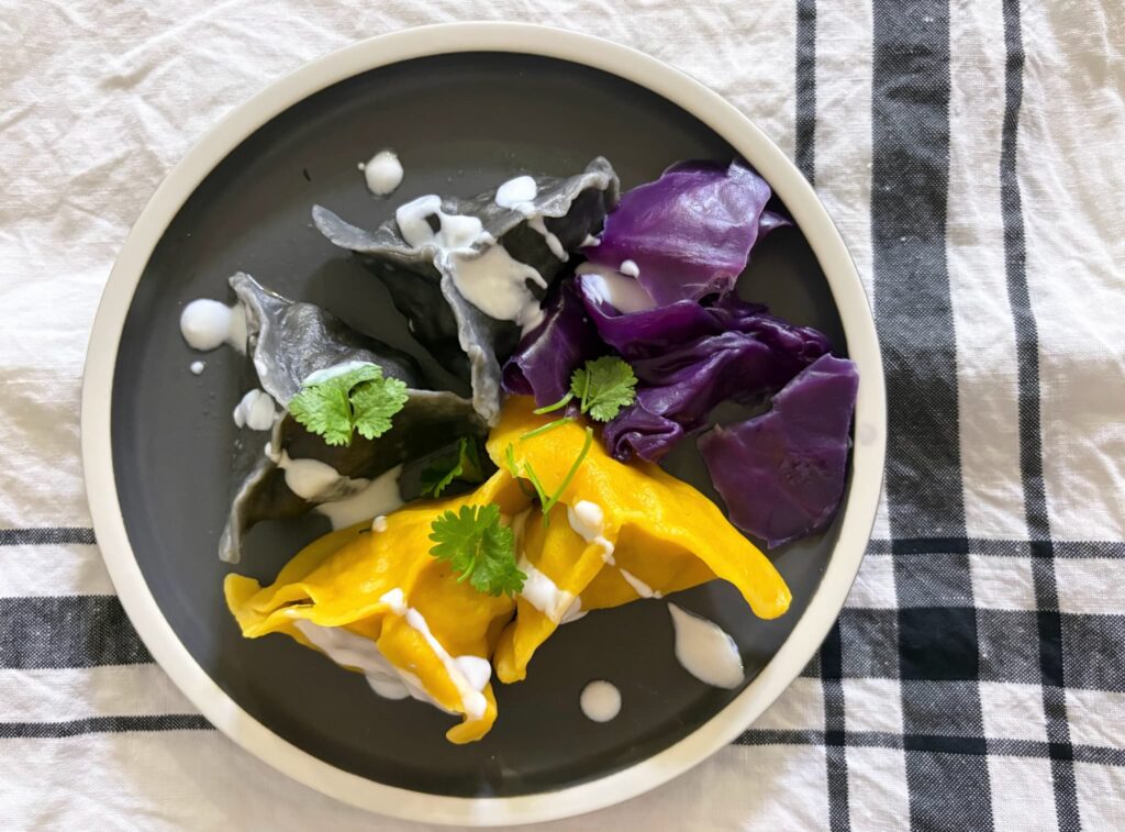生地に紫色のキャベツを使えば、カラフルで楽しいかも?