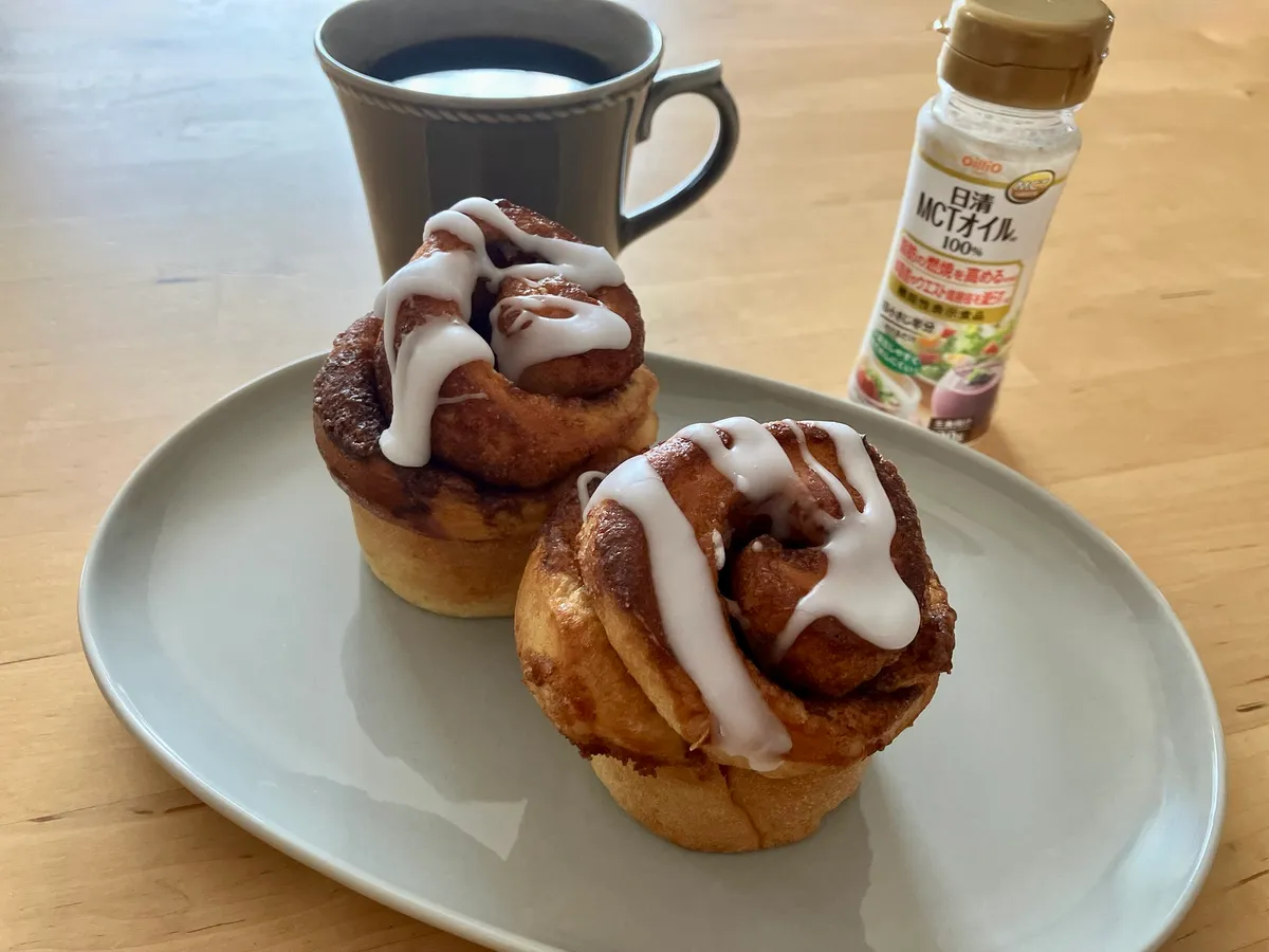 シナモンロールと楽しむ「コーヒー」にちょい足し!『日清MCTオイル』で気軽に続けるオイル生活