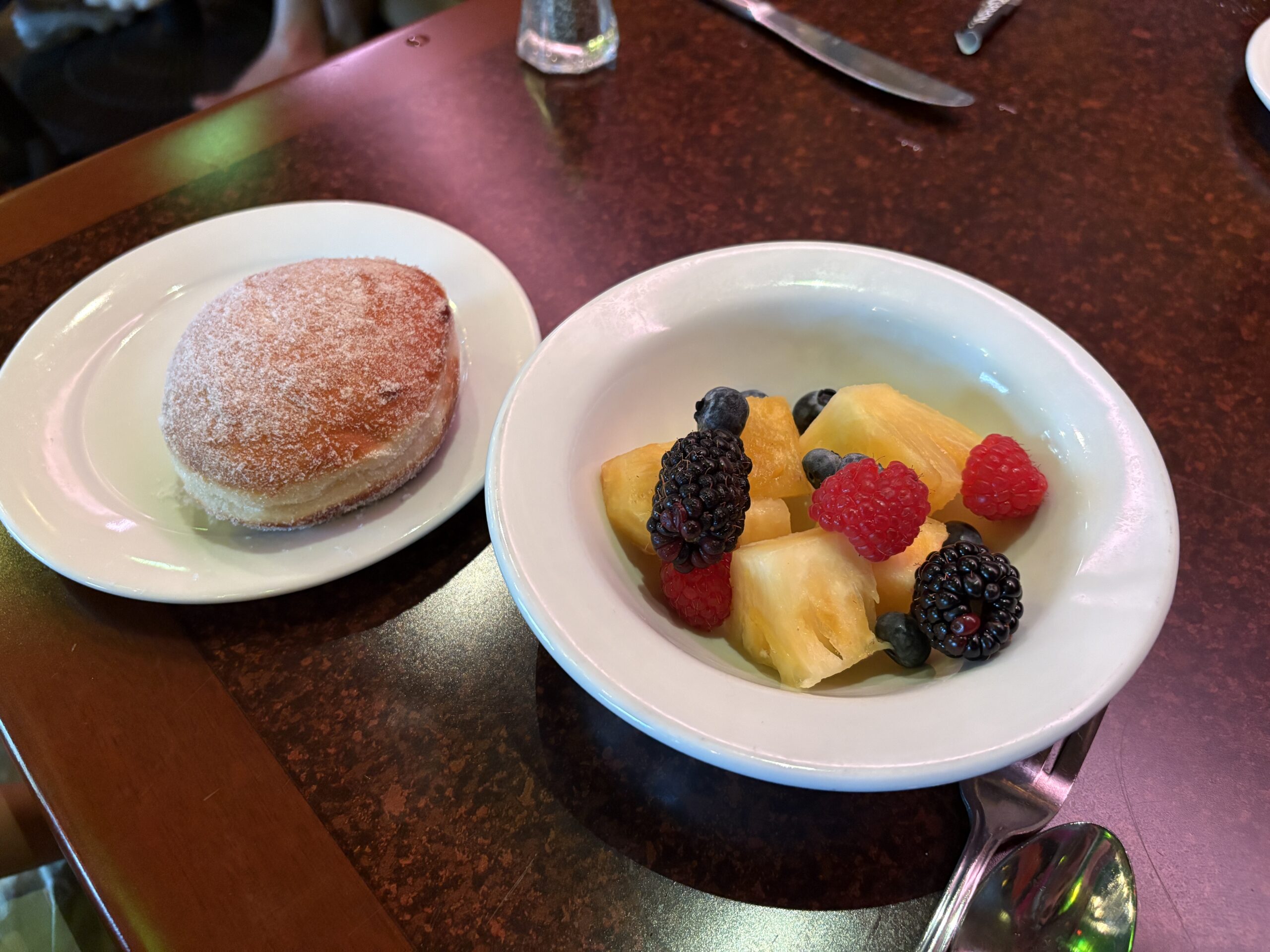 注文が終わると、すぐにマラサダと、季節のフルーツが運ばれてきます。