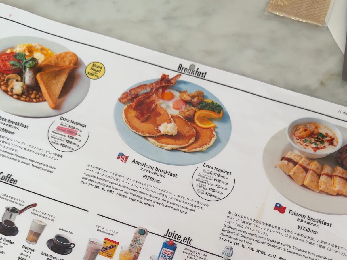 ここでは、イギリス・アメリカ・台湾の定番メニューに加えて、2ヶ月ごとに変わる“期間限定の世界の朝食”が楽しめるみたい🍽️