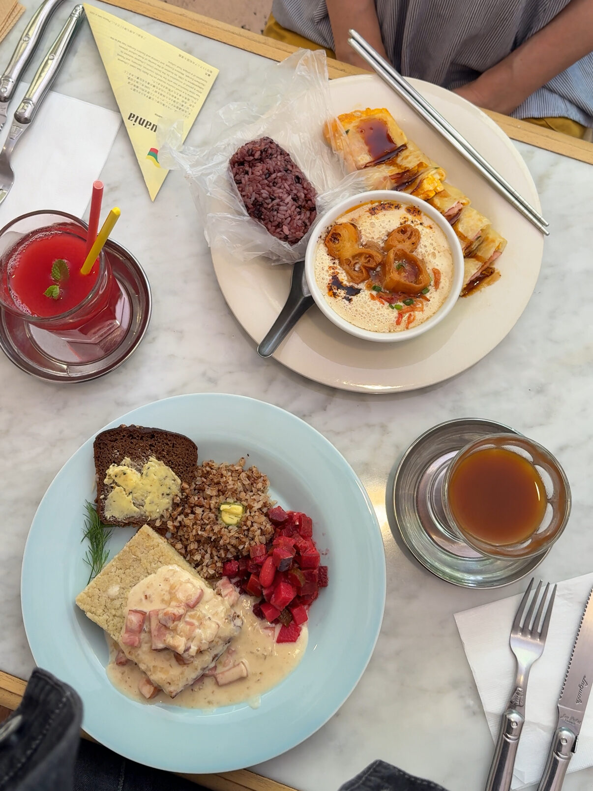 私は期間限定メニューのリトアニアの朝食🇱🇹、一緒に行った母は台湾の朝食🇹🇼を注文しました。