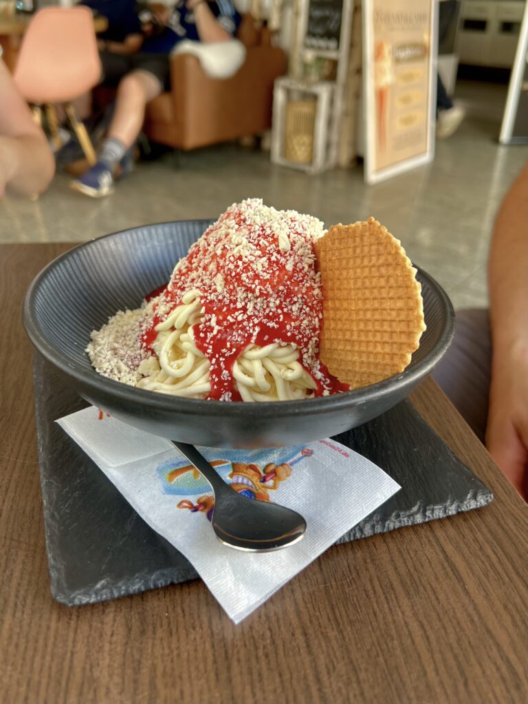 スパゲッティーアイスを作ってみては如何でしょうか?