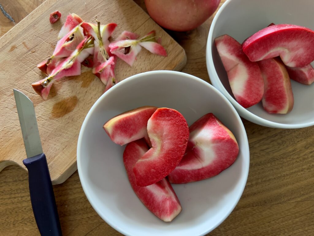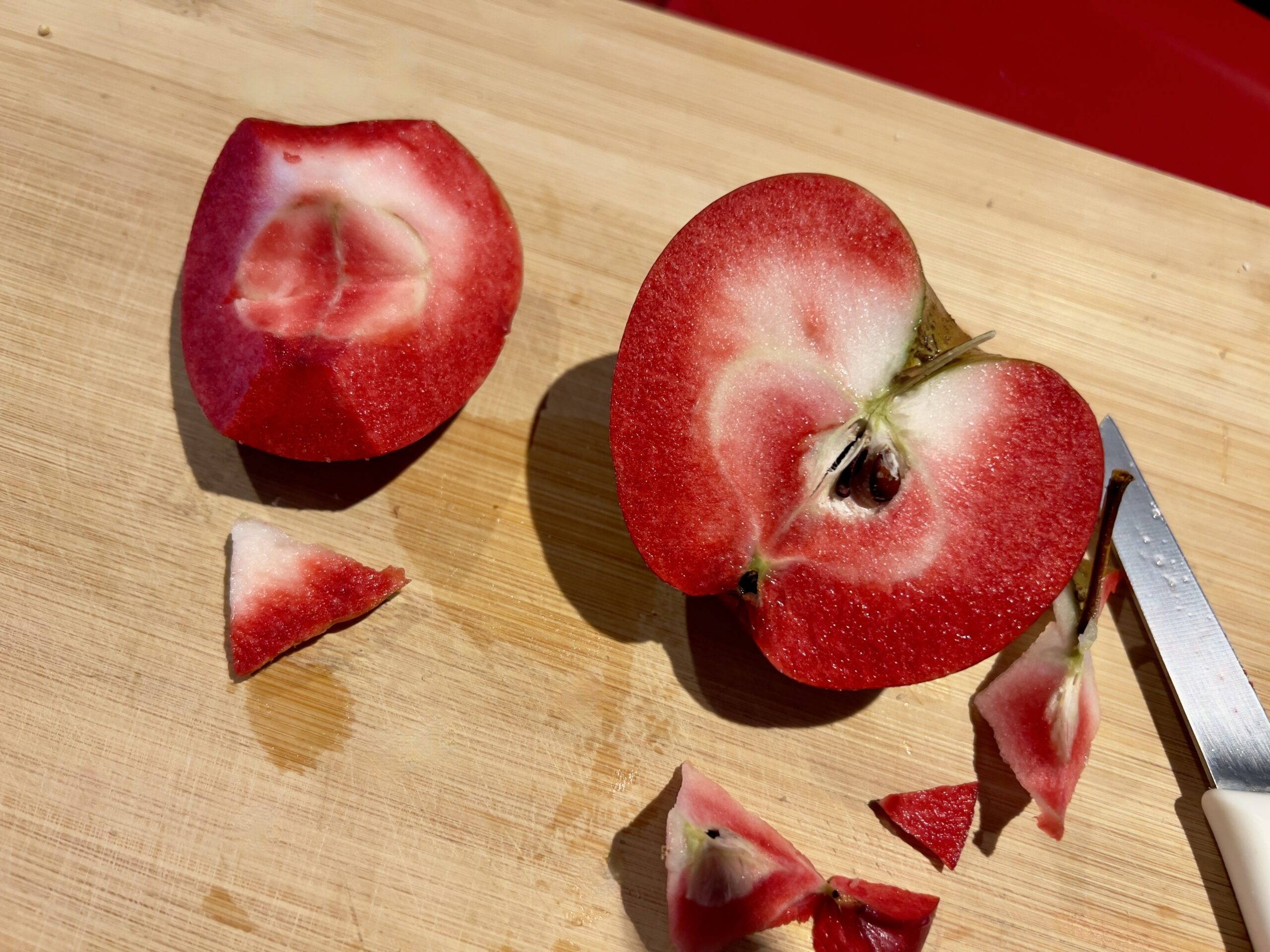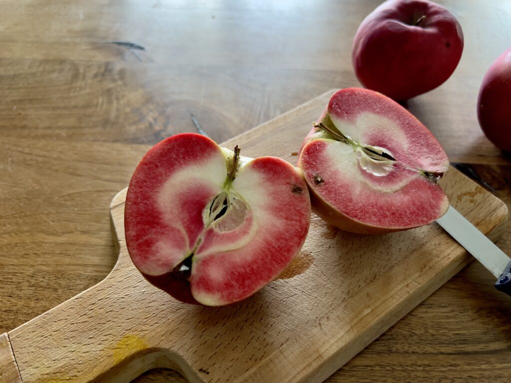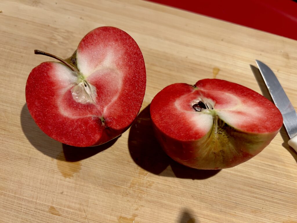 他のリンゴに比べ小ぶりですが見た目から中の色は分かりません。