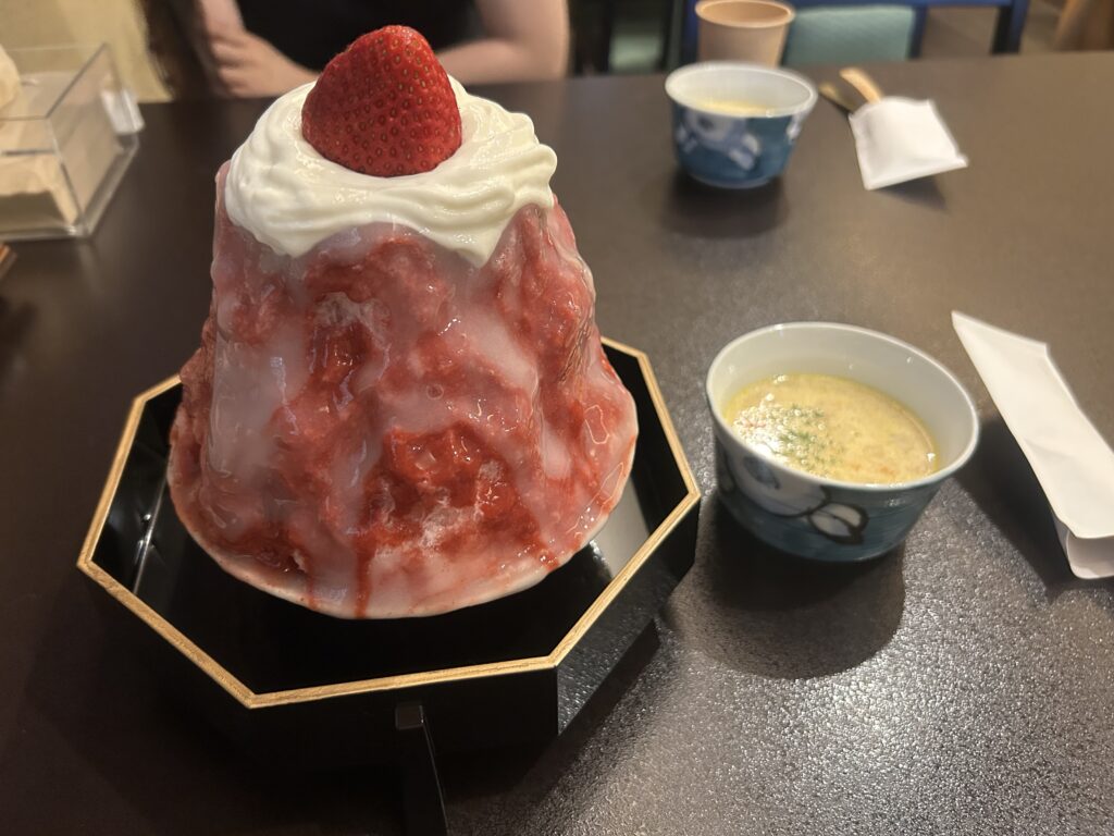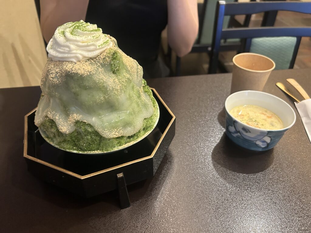かき氷にはほうじ茶が付いており、体を冷やしすぎずに美味しく頂けました。