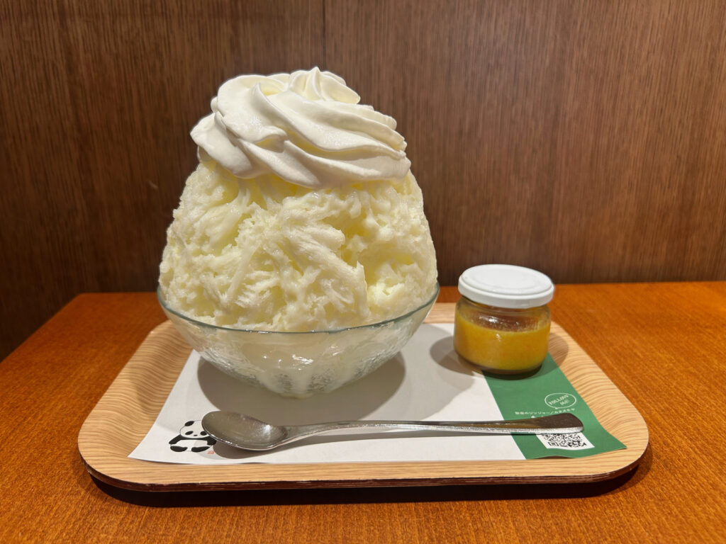 白い氷の上には練乳のエスプーマがのっています。シロップはジンジャーミルクをセレクト。口に含むとまずは優しい甘さ、その後からじんわりと生姜の刺激が追いかけてきます。添えられた瓶には「オレンジ生姜コンフィチュール」がたっぷりと入っています。自分の好きなタイミングで味変できるのが嬉しいです☺交互に押し寄せてくる冷たさと刺激がたまらず、スプーンを運ぶ手が止まりませんでした。