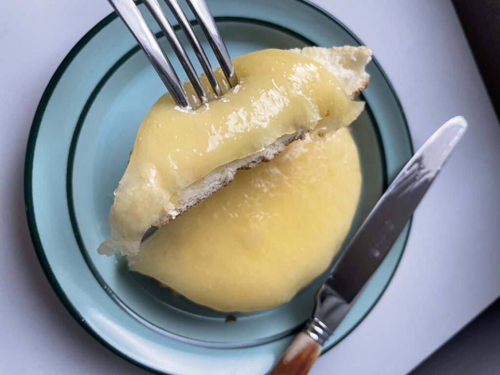 スポンジは甘く、チーズはしょっぱいので、甘いケーキが苦手な方でも食べやすいですよ。