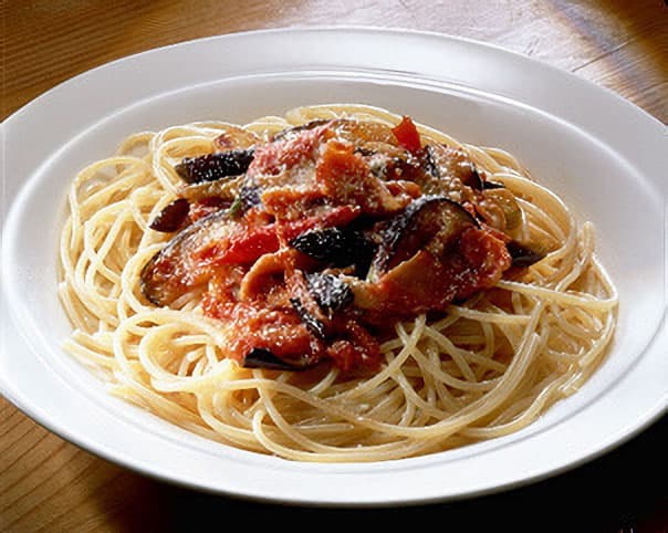 なすとベーコンのトマトソーススパゲティ