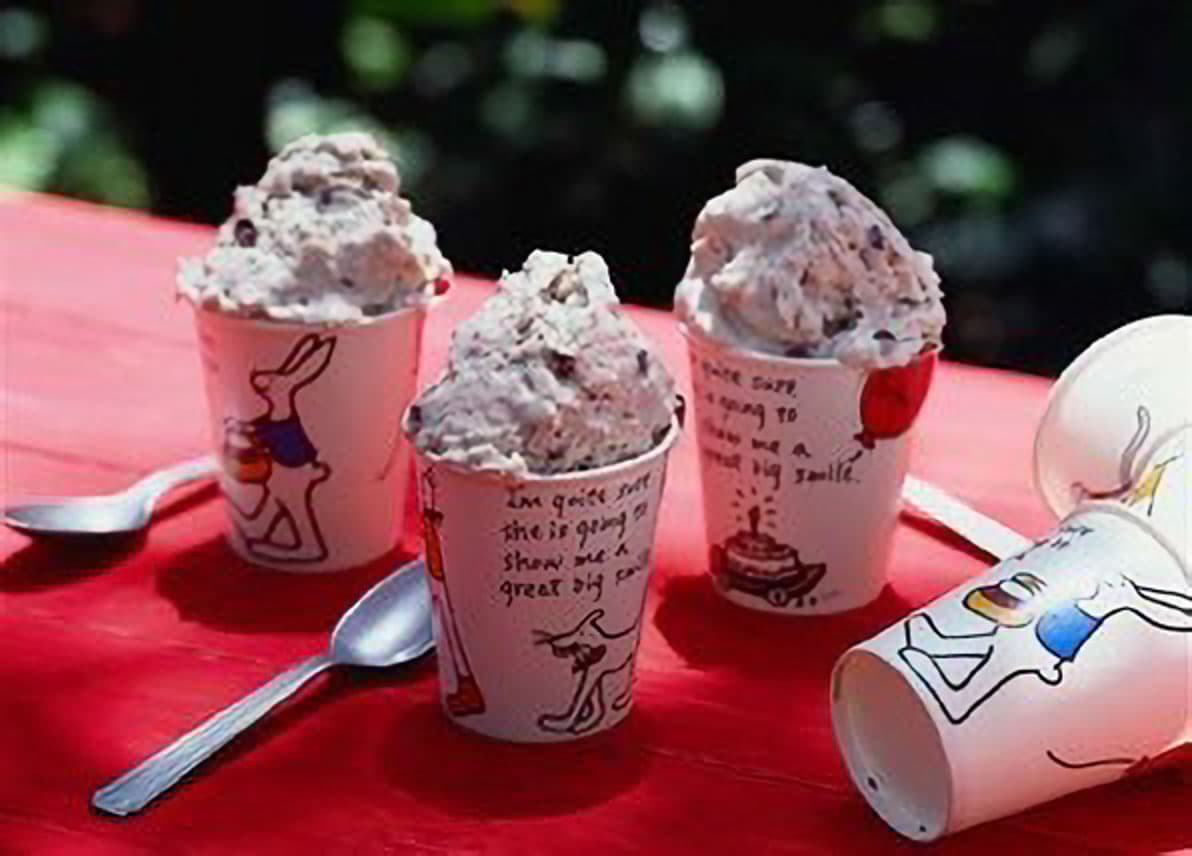 裏ごししたバナナに牛乳150cc、チョコチップ40g、泡立てた生クリームを加えて木べらで混ぜる。大きめの密閉容器などに流し入れ、ふたかラップをして冷凍庫へ。3時間たったらスプーンで全体をかき混ぜ、さらに3時間冷やしてでき上がり。