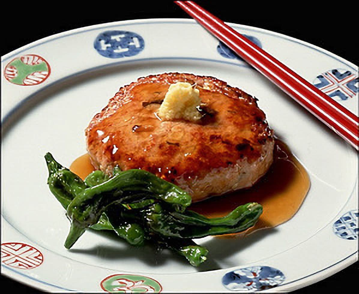 ねぎやしいたけがたっぷり入った、歯ざわりのいいハンバーグ。