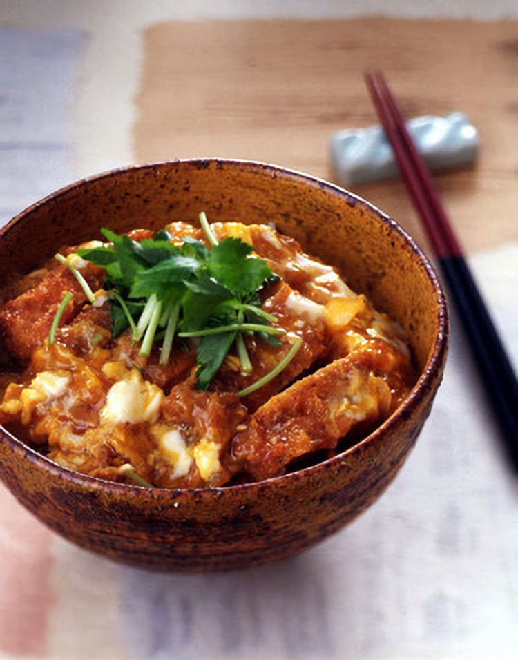 とんカツは幅1.5~2cmに切る。玉ねぎは1個を縦半分に切り、縦に幅6mmに切る。卵は器に割りほぐす。三つ葉は長さ3cmに切る。