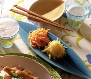 セロリは筋を取り、長さ4cmの細切りにする。にんじんは皮をむき、長さ4cmの細切りにする。ボールにドレッシングの材料を混ぜ合わせておく。