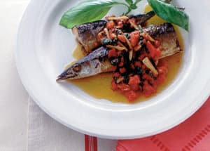 バジルを加えてさっと炒め、色が変わったらオリーブオイル大さじ1を加えて混ぜ合わせ、さんまにかける。好みで飾り用のバジルを添える。