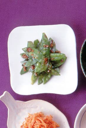 フライパンにオリーブオイル大さじ2とにんにくを入れて弱火で熱し、香りが立つまで炒める。にんにくが色づいたらきぬさやを加えて炒め、きぬさやが色鮮やかになったら、しょうゆ大さじ1と1/2をふり入れてさっと炒める。完全にさめたら密閉容器などに移して冷蔵庫に入れ、3日くらいで食べきるようにする。