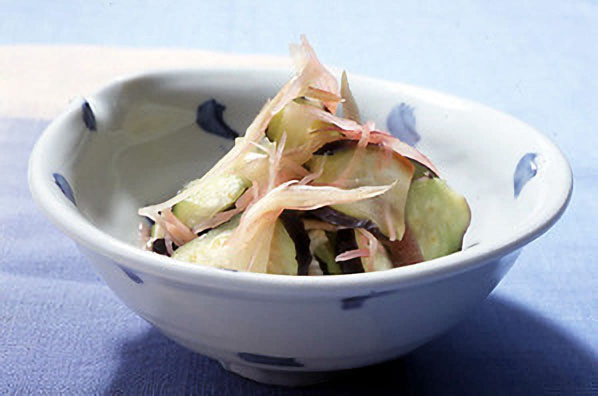 合わせ酢の材料を混ぜ合わせておく。なすとみょうがの水けを絞り、合わせ酢を加えて全体をあえ、器に盛る。