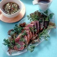 - 2皿にサニーレタスを敷き、かつおとクレソンを盛る。青じその葉を散らし、いただくときににんにくだれを回しかける。 (1人分131kcal、塩分1.0g)