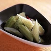 セロリ2本は葉と筋を取り除き、一口大の乱切りにしてボールに入れる。鍋に赤唐辛子1本、白ワイン大さじ3、酢大さじ1、砂糖大さじ1/2、塩小さじ1/2、粗びき黒こしょう少々を入れて強火にかける。煮立ったら熱いうちにセロリに回しかけ、ときどき混ぜながら30分ほどおき、器に盛る。