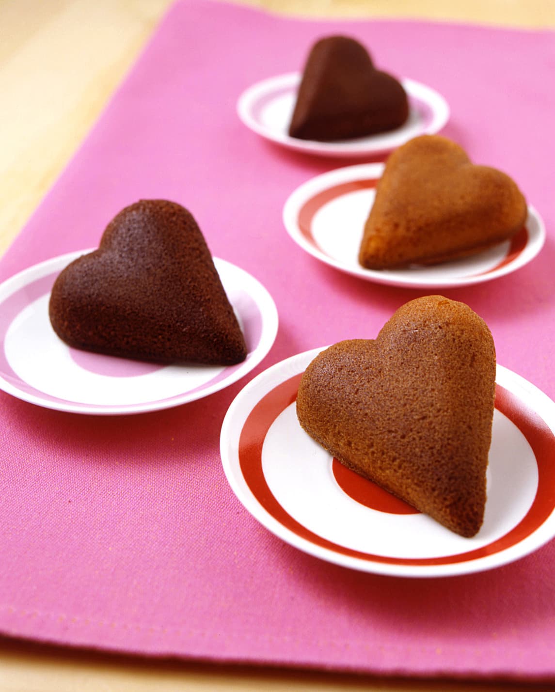 オーブンを220℃に温める。生地をスプーンでかるく混ぜ、型の八分目まで入れ、さらに型ごと低い位置からテーブルに2~3回落として空気を抜く。220℃のオーブンで約2分、180℃に下げて約13分(中心に竹串を刺してみて、生っぽい生地がついてこなければOK)焼く。型からはずしてケーキクーラーなどにのせ、さます。