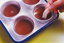 手を水でぬらしながら【5】で作ったぎゅうひのラップをはずし、幅1cmに切る。【6】の鍋底を水につけ、混ぜながらさます。人肌よりやや熱めくらいになったら、バットに並べた型に手早く等分に流し入れ、ぎゅうひを等分に加える。粗熱が取れたら冷蔵庫で1時間ほど冷やし固める。水ようかんの縁にナイフを差し入れて空気を入れ、型を皿に伏せて取り出す。