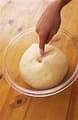 生地が2倍にふくらんだら、人さし指に強力粉をつけて、第二関節くらいまで差し込んで抜く(フィンガーテスト)。穴がふさがらないようなら発酵終了。