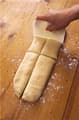 生地を半分に折って、中心から少しずつのばし、10×30cmほどの長方形にする。