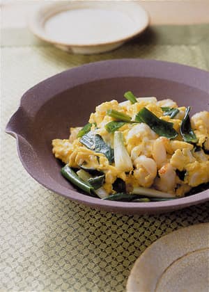 えびとわけぎの卵炒め
