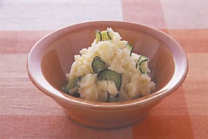 じゃがいもは皮をむいてボールに入れ、フォークでざっとつぶす。らっきょう、らっきょうの漬け汁、マヨネーズ大さじ2を加えて混ぜ、きゅうりを入れて混ぜ合わせる。