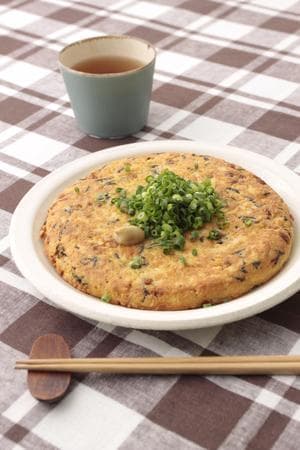 フライパンにサラダ油大さじ1を弱めの中火で熱し、【2】を流し入れて平らな円形に広げ、3分ほど焼く。フライパンよりひとまわり小さい皿をかぶせ、押さえながらひっくり返し、そのまますべらせてフライパンに戻す。さらに3分ほど、こんがりと焼き色がつくまで焼く。器に盛り、万能ねぎと、練り辛子適宜をのせる。しょうゆ適宜をかけていただく。