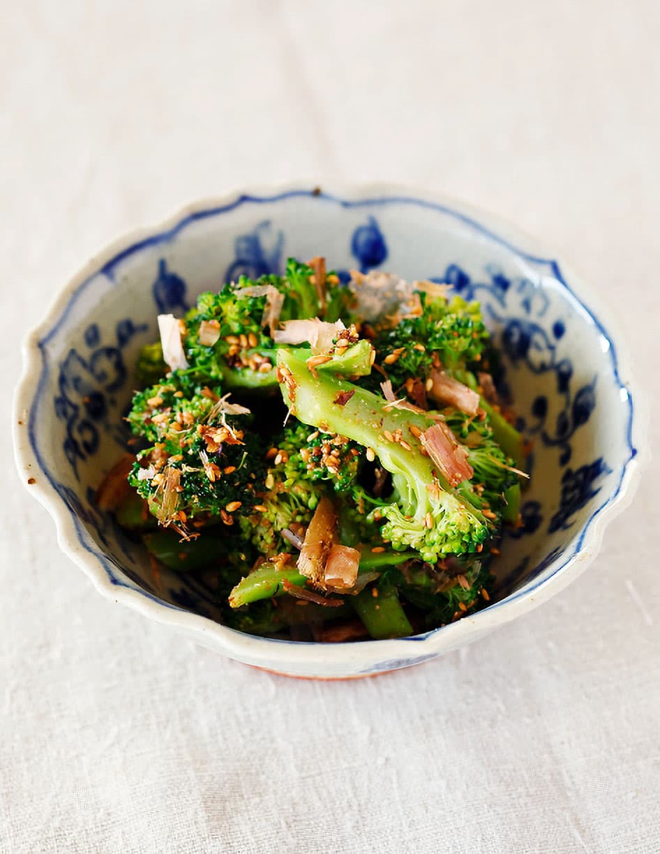 洋風イメージの強いブロッコリーですが、ごまとの相性は抜群。おかかとコラボさせ、うまみの強い一品に。