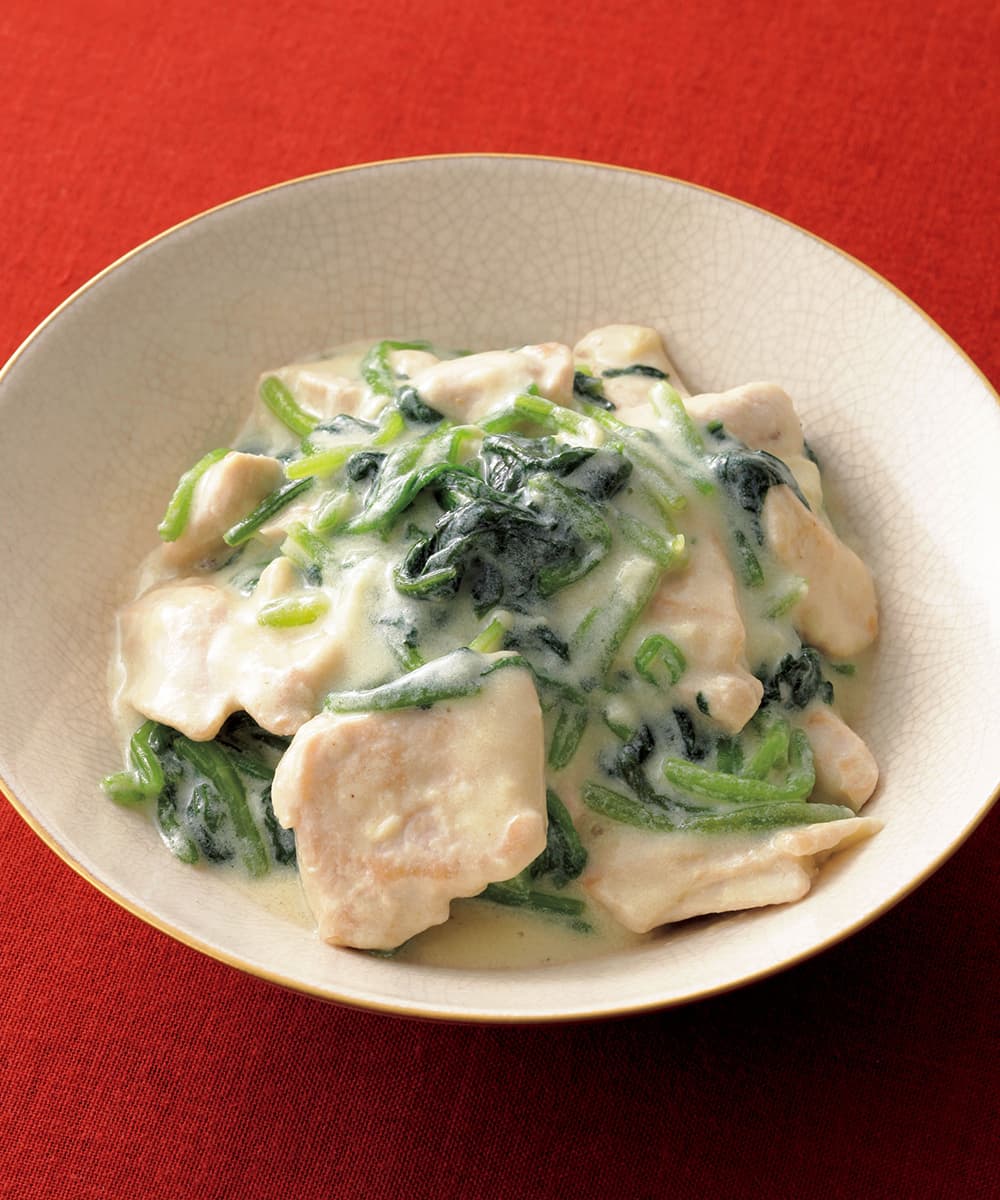 \ オレペAIが選んだ /「ほうれん草と鶏肉の豆乳クリーム煮」の