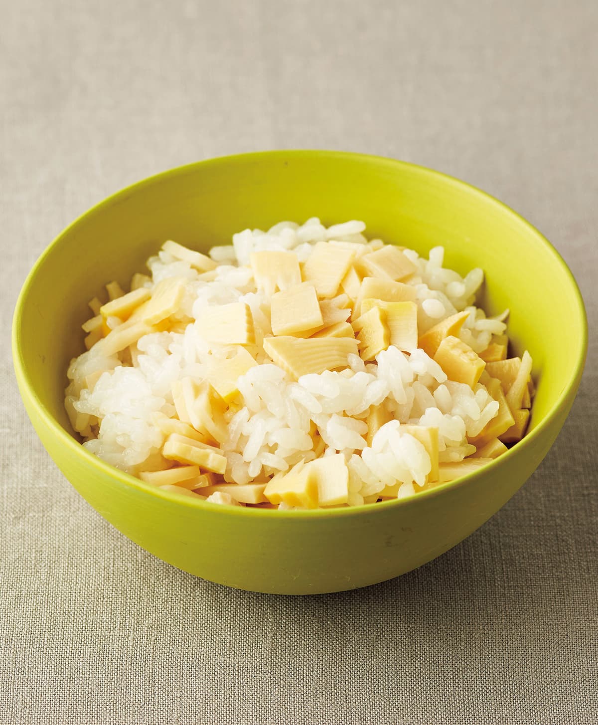 上品な薄味のたけのこご飯を、さらにさっぱりと食べるアイディア。フライパンで香ばしく焼いた油揚げ、大根おろしをのせ、しょうゆをたらり。レモンを絞ってどうぞ。