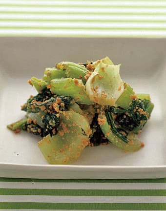 青梗菜をさっとゆでたら、しょうゆとごまであえるだけ。あと一品というときにおすすめです。