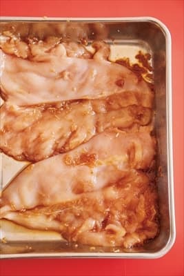バットに漬けだれの材料を合わせて混ぜ、鶏肉を加えてもみ込み、1時間ほどおく。