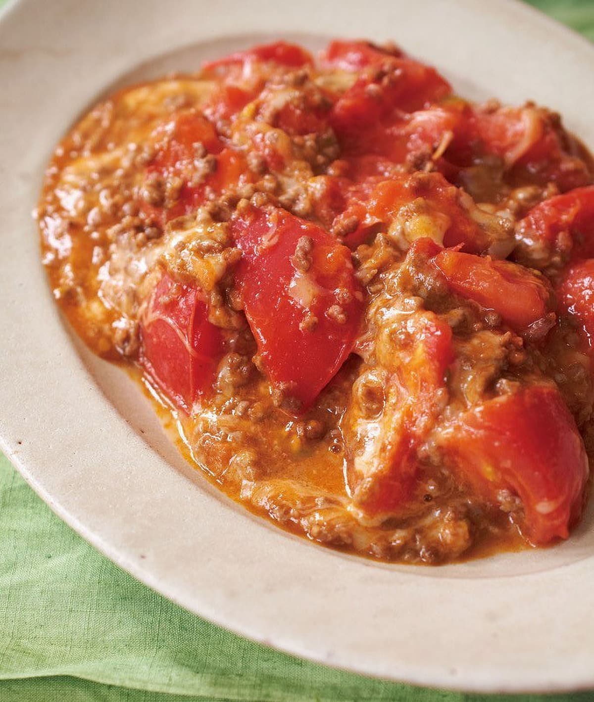 トマトのほどよい酸味と、ケチャップとソースの濃厚味が好相性。ミートソースのような味わいで、ご飯にのせても◎!